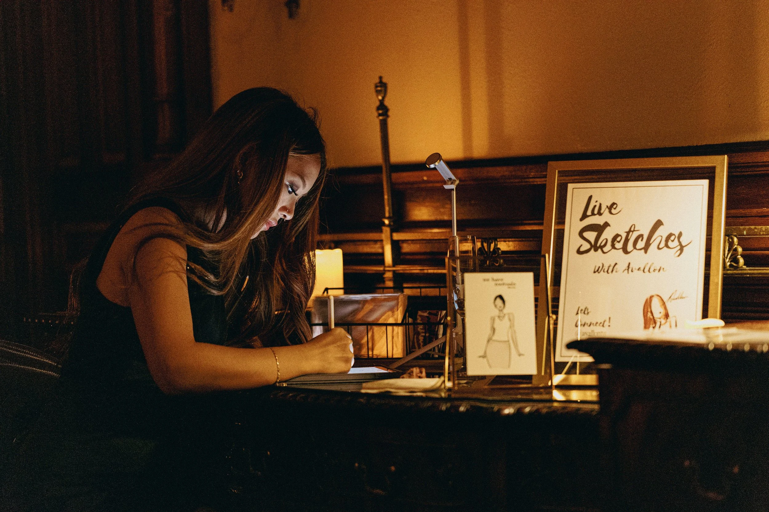 From capturing guests in elegant line portraits at weddings and galas to crafting imaginative worlds for print and digital media, Avallon’s work is rooted in connection with the people she works with, the moments she captures, and the stories she helps tell. She loves collaborating on new projects and is always excited to hear about ideas that she can bring to life through her art.
